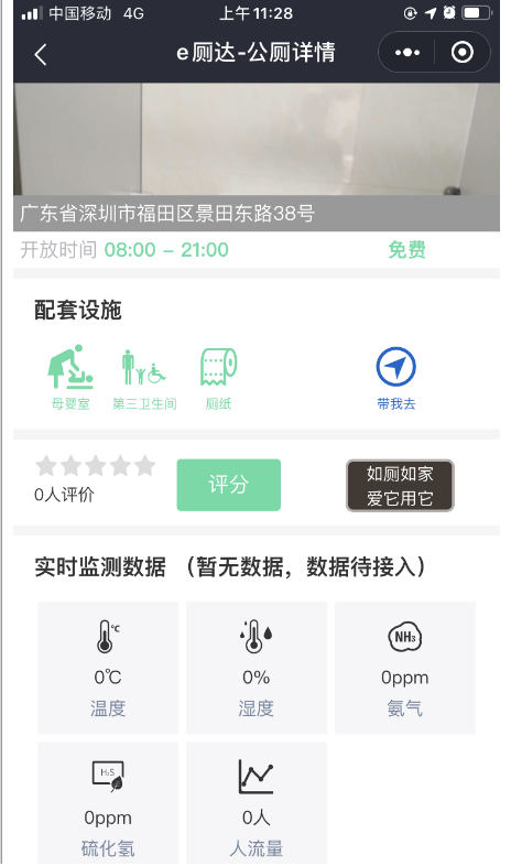 第二個(gè)功能是查看廁所情況。如果市民想知道廁所是否爆滿(mǎn),有沒(méi)有母嬰室,衛(wèi)生情況如何,點(diǎn)擊任意廁所可查看每座公廁的詳細(xì)情況。