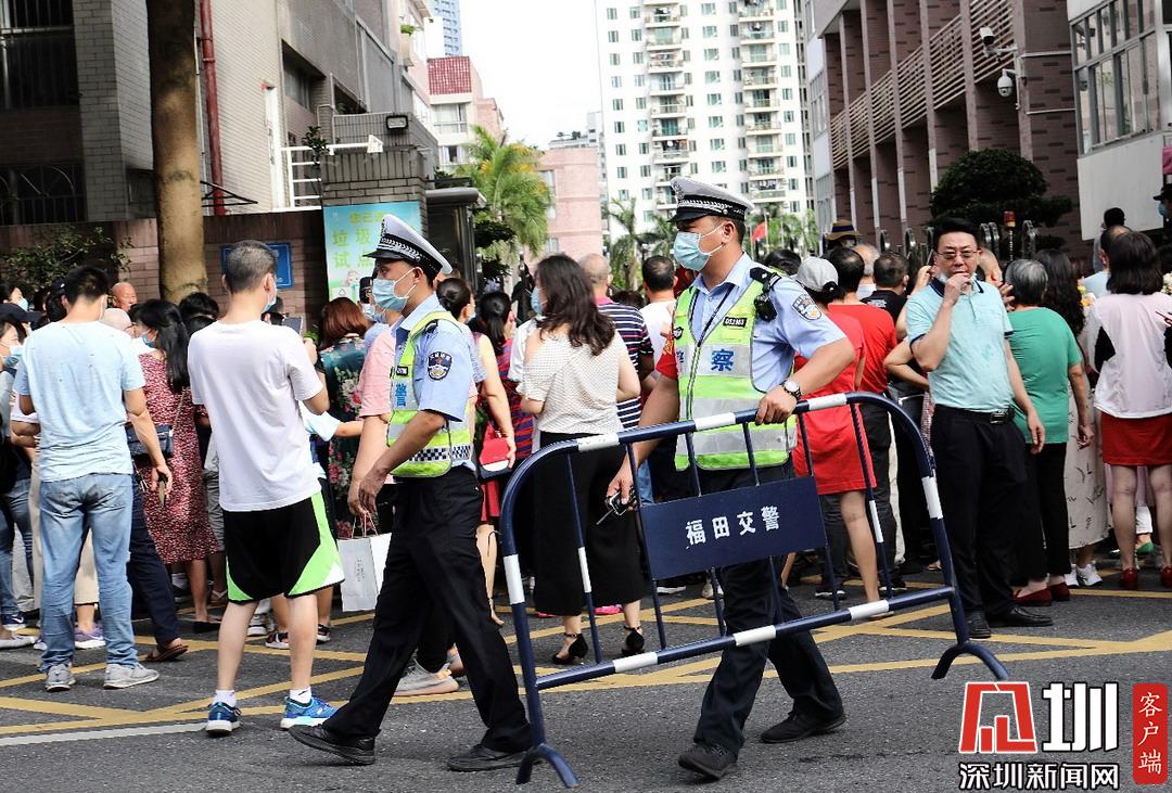 深圳高級(jí)中學(xué)考點(diǎn)外,福田交警加強(qiáng)周邊道路巡邏管控。