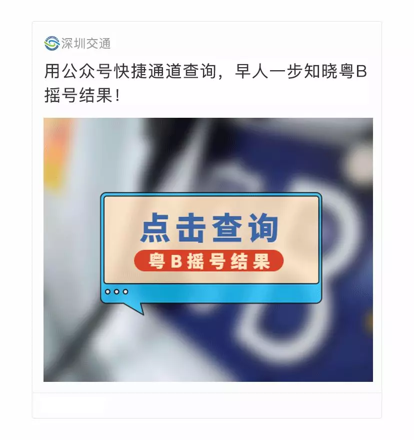 搖號當日,“深圳交通”微信公眾號會第一時間推送公布粵B搖號結(jié)果的微信文章。