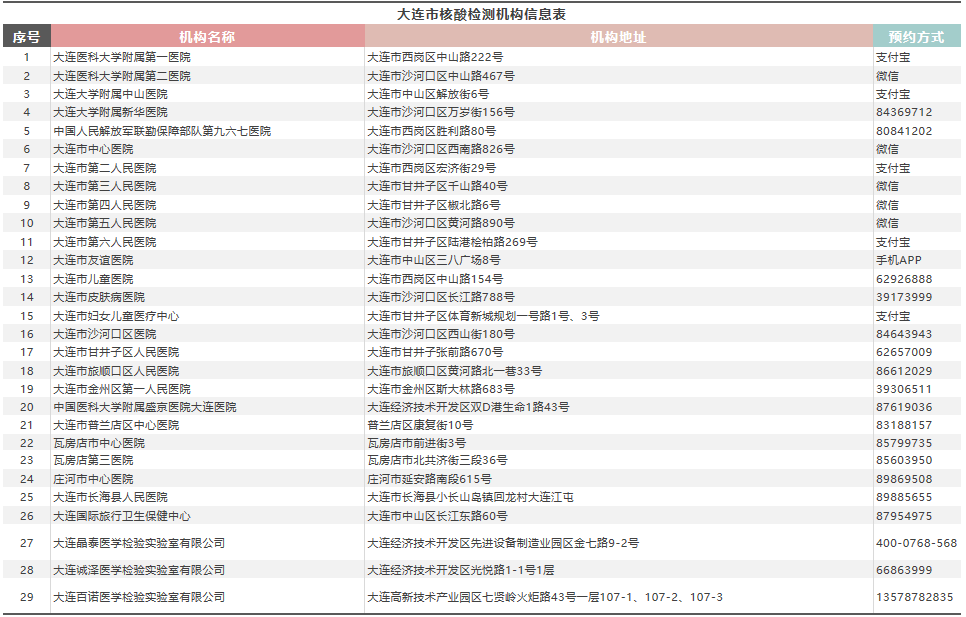 7月24日起,大連市人員原則上實(shí)施非必要不離連,確需離連的,須持7日內(nèi)核酸檢測(cè)陰性證明;冷藏冷凍肉品、海產(chǎn)品企業(yè)或場所從業(yè)人員盡快實(shí)施核酸檢測(cè)。大連市對(duì)外核酸檢測(cè)機(jī)構(gòu)現(xiàn)有29家,機(jī)構(gòu)地址和預(yù)約方式,市民可登錄大連市衛(wèi)生健康委官方網(wǎng)站進(jìn)行查詢。