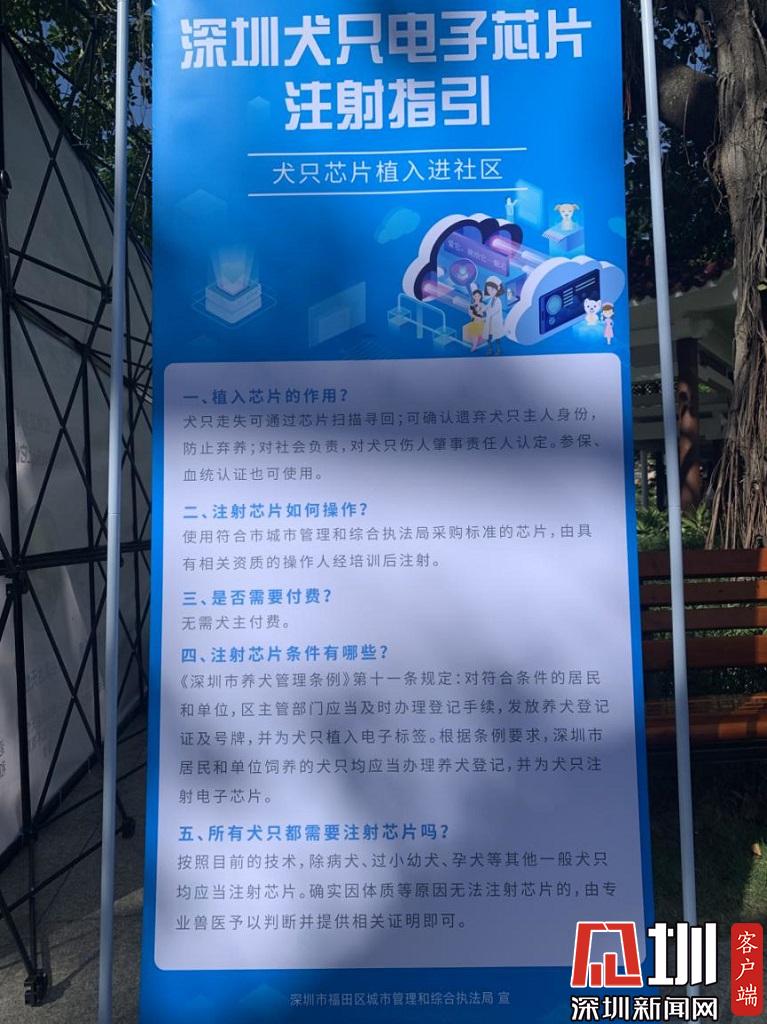 見圳客戶端·深圳新聞網(wǎng)2020年7月26日訊(記者 戰(zhàn)旗)7月26日上午,由深圳市城市管理和綜合執(zhí)法局主辦,福田區(qū)城管和綜合執(zhí)法局承辦的全市首場(chǎng)“文明養(yǎng)犬·芯連心”犬只芯片植入進(jìn)社區(qū)活動(dòng)在福田區(qū)景蜜社區(qū)公園開展。記者現(xiàn)場(chǎng)獲悉,2020年年底前,深圳將實(shí)現(xiàn)犬只芯片管理全覆蓋,目前,全市各區(qū)都在逐步推進(jìn)犬只芯片植入工作,福田區(qū)、龍崗區(qū)、龍華區(qū)、羅湖區(qū)、大鵬新區(qū)已與100家寵物醫(yī)院正式簽訂了《犬只芯片植入委托服務(wù)》。