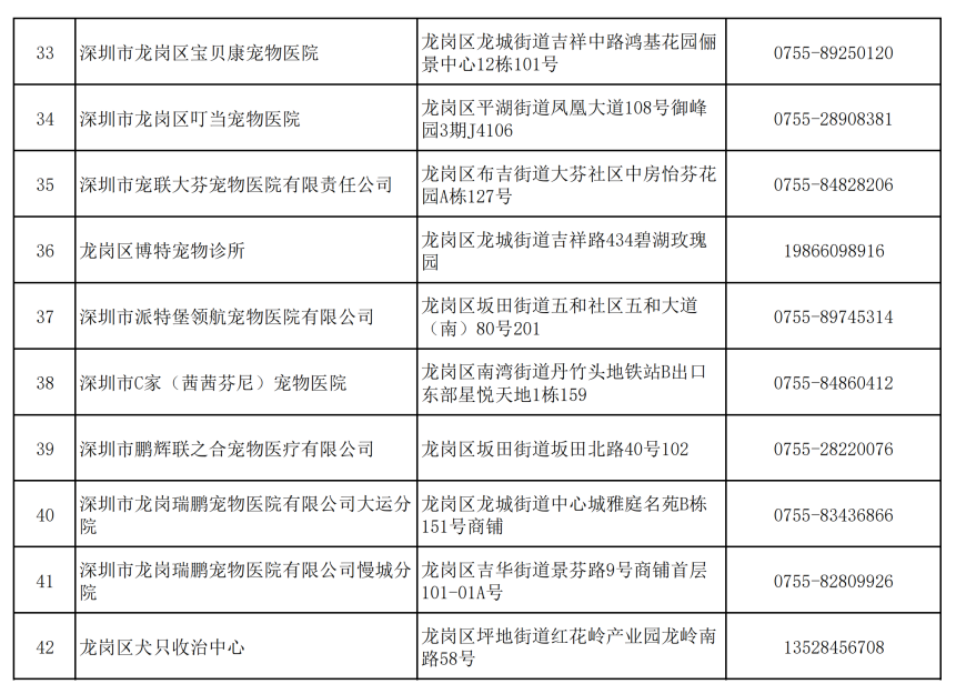 已與各區(qū)簽訂了《犬只芯片植入委托服務(wù)》的寵物醫(yī)院信息。