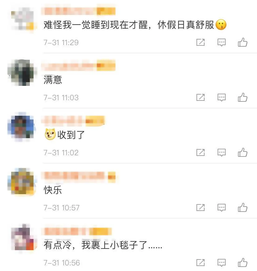 很多小伙伴感覺(jué)涼快了不少~“舒服~”“冷得我都裹上小毯子了~”