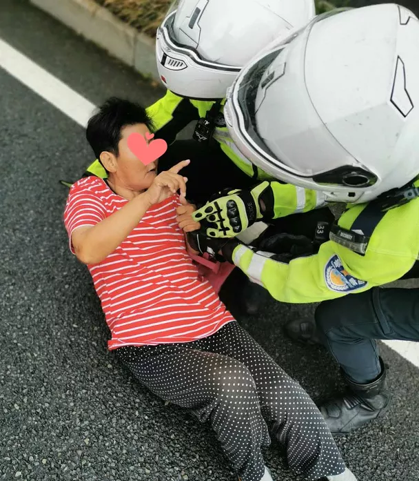 8月5日上午,深圳交警鐵騎巡邏至北環(huán)大道西往東方向珍珠嶺天橋路段輔道轉(zhuǎn)主道路口時(shí),發(fā)現(xiàn)一位老太太躺在路中間。