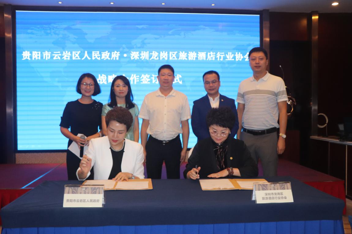 最后,貴陽市云巖區(qū)人民政府與深圳市龍崗區(qū)旅游酒店行業(yè)協(xié)會,共同簽訂戰(zhàn)略合作協(xié)議。雙方建立長期合作關(guān)系,全面廣泛、深度地進(jìn)行合作、資源共享,將充分發(fā)揮各自優(yōu)勢,就中高端酒店產(chǎn)業(yè)資源交流、優(yōu)勢互補、產(chǎn)業(yè)導(dǎo)入等開展深入合作。