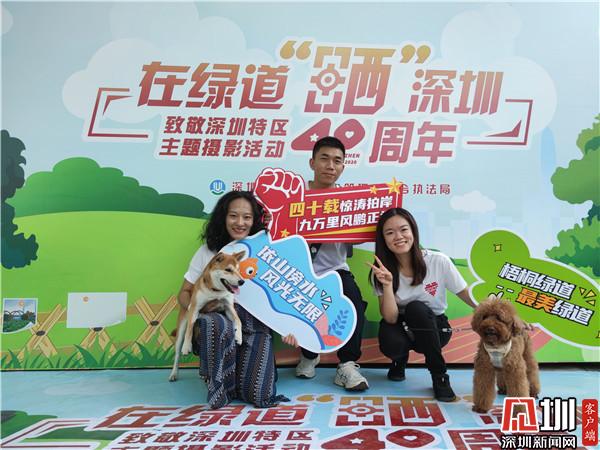 “我是在‘i羅湖’公眾號上看到消息,說是周日梧桐綠道會舉辦攝影活動,于是帶著家人來游玩拍照”。羅湖市民周先生說。這里有深圳和綠道元素的標語、頭箍、合影異形牌等道具,拍照打卡很有紀念意義,而且還有專業(yè)的攝影師和智能照片打印機。“我們一家人很久沒有合影了”拿著剛打印出來的照片,周先生看著家人笑得很開心。