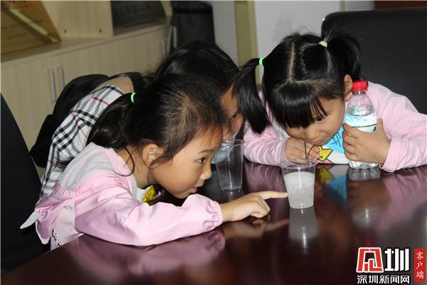 30位社區(qū)青少年年紀(jì)最小的6歲,最大的12歲,有的是跟家長(zhǎng)一起,有的是兄弟姐妹一起來(lái),他們認(rèn)真聽(tīng)課,積極參與實(shí)驗(yàn),眼看著普普通通的自來(lái)水,加入一種化工原料,就從液體變成了顆粒狀,霏霏小朋友張大了嘴巴驚呼:“好神奇??!”在老師的講解下,他們知道了其中的原理,同時(shí)也學(xué)會(huì)了尋找身邊生活中的科學(xué)現(xiàn)象,用化學(xué)的視角理解身邊的問(wèn)題。