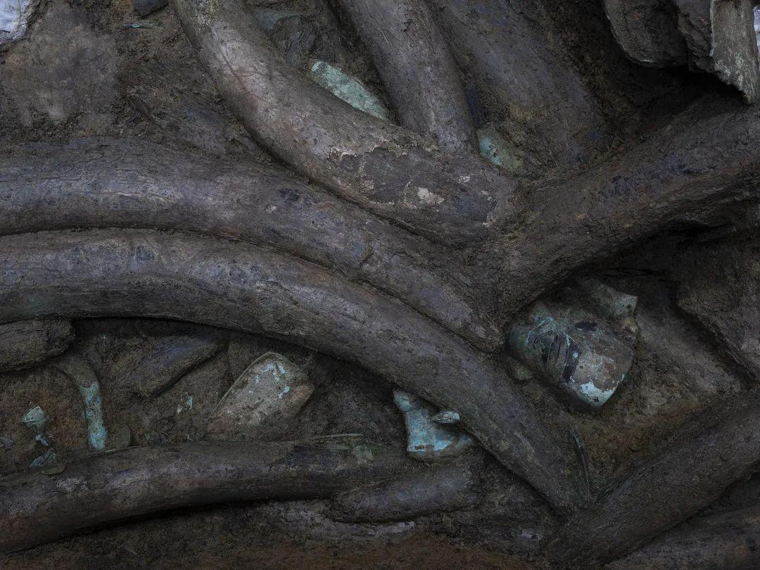 目前,三星堆遺址考古工作正在進(jìn)行中,新發(fā)現(xiàn)的六個(gè)“祭祀坑”已發(fā)掘至器物層,出土金面具殘片、鳥型金飾片、金箔、眼部有彩繪銅頭像、巨青銅面具、青銅神樹、象牙、精美牙雕殘件、玉琮、玉石器等重要文物。