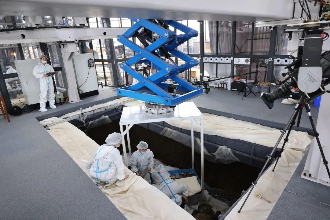 記者看到,在考古發(fā)掘現(xiàn)場(chǎng)設(shè)有考古實(shí)驗(yàn)室,此舉屬于首創(chuàng),實(shí)現(xiàn)考古出土文物與文物保護(hù)無縫對(duì)接。