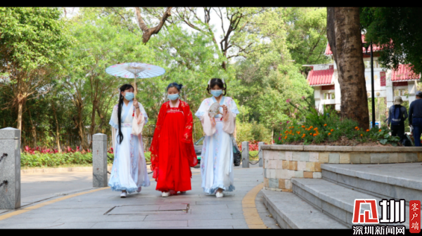 風(fēng)景如畫的東湖公園吸引來了不少漢服愛好者,她們身著霓裳羽衣,手撐紙傘,步履輕盈,五彩繽紛的服飾與滿園的春色相映生輝,一幅春天最美的畫卷就這樣在眼前展開。穿漢服的小姐姐們告訴記者,她們是專程從龍華過來的,因為很喜歡漢服又正值踏青賞花好風(fēng)光,特地與好友來東湖公園一起記錄春天的精彩瞬間。