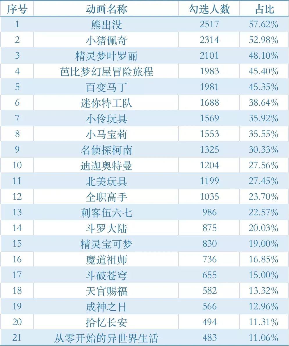 消費(fèi)調(diào)查選取21部有代表性的未成年人動(dòng)畫片