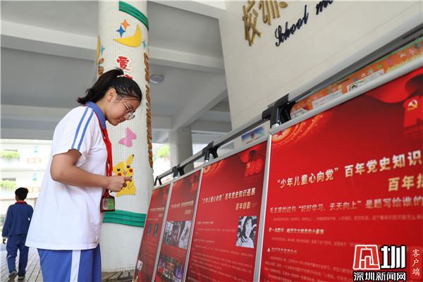 記者首先來(lái)到羅湖區(qū)翠北實(shí)驗(yàn)小學(xué),主題展板位于學(xué)校一樓大廳,有很多同學(xué)會(huì)在下課的時(shí)間來(lái)這里觀看學(xué)習(xí)。學(xué)校社工邱女士參與設(shè)計(jì)本次活動(dòng)的時(shí)候想到,黨史對(duì)孩子們比較遙遠(yuǎn),想要讓孩子們深入學(xué)習(xí)就不能用大人的方式死板教條的灌輸,要調(diào)動(dòng)孩子們的積極性,讓孩子們自己做“小講師”。