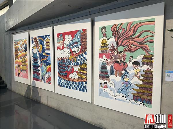 騎著小白兔在天上看四大名樓、把四大名樓帶到宇宙里、在四大名樓上面遇見天空之城……現(xiàn)場,幾幅畫作吸引觀賞者駐留觀看。“歷代文人墨客用千古名篇頌揚(yáng)四大名樓,而這個《中國四大名樓》系列作品,孩子們將與深圳共成長的切身感受,與歷史畫卷中的四大名樓發(fā)生靈感碰撞,以簡單的水墨畫表現(xiàn)形式,呈現(xiàn)出不可思議的藝術(shù)效果?!弊髌分笇?dǎo)老師于雪在采訪時(shí)介紹說道,這一系列的作品,是三四年級的孩子創(chuàng)作,身高沒有很高,但是作品的畫幅很大,而且用的材質(zhì)是宣紙,比較容易破,因此孩子們在繪畫過程中也學(xué)會了調(diào)整身體的位置和紙張比例,以及更加小心翼翼地保護(hù)自己的畫作,這也是他們創(chuàng)作中有趣的過程。