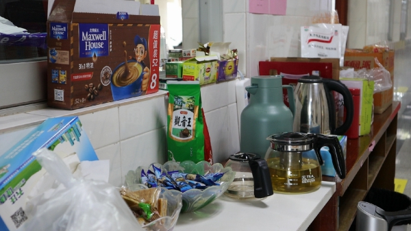 在不大的辦公室,來自各個地區(qū)的疾控人員坐在一起,聚精會神的研究手中的數據,與同事核對信息準確性,不時有工作人員撥出電話、接到電話,神情專注地聆聽聽筒后的每一個數據。在門外,一條長桌上擺滿了各種零食、飲品,一盒潤喉糖已經見底,一箱功能飲料也已經所剩無幾。