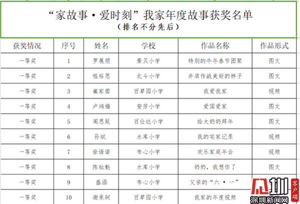 “家故事·愛時刻”我家年度故事獲獎名單 。