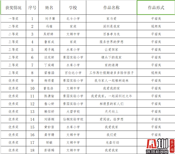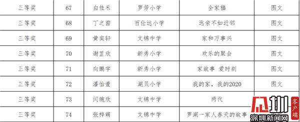 見圳客戶端·深圳新聞網(wǎng)2021年6月1日訊(記者 李慧)6月1日,羅湖區(qū)“家庭文明公益廣告”及“我家年度故事”征集活動獲獎名單公布,其中,18個“家庭文明公益廣告”和74個“年度故事”圖文作品獲獎。