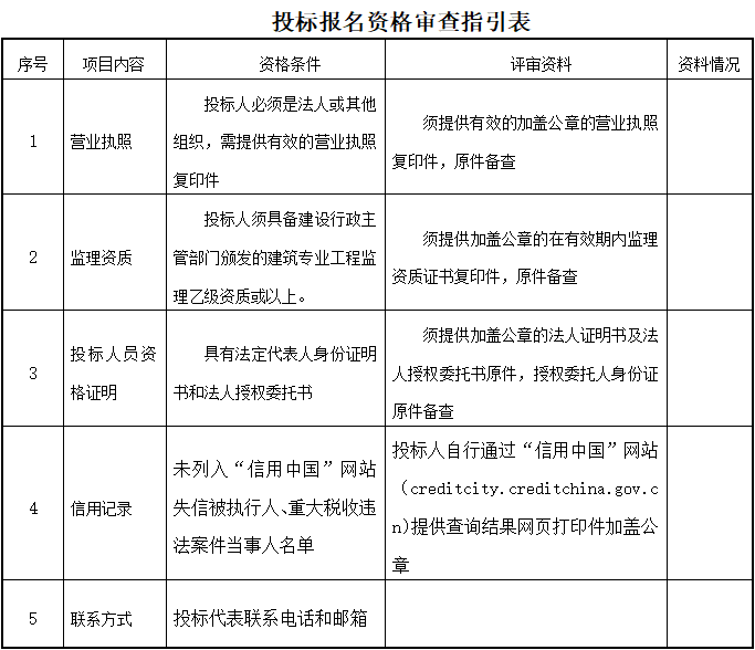 1.以上資格審查合格條件標(biāo)準(zhǔn)中如出現(xiàn)一處不符合要求,其投標(biāo)報(bào)名將不被接受;