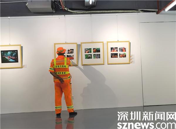 入展作品作者鄭鐘武來到羅湖美術(shù)館H廳就看到自己的作品放在顯眼處,還特地請工作人員為他與作品合影。他說6月份在網(wǎng)上看到這個關(guān)于環(huán)衛(wèi)工人主題的作品征集活動,就在東門步行街拍下了《步行街一抹“橘”》,自己的作品被選入展并且在美術(shù)館展出,讓更多人通過作品了解和尊重環(huán)衛(wèi)工人,覺得特別有意義。