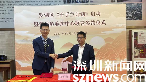 儀式開始,黃貝嶺股份公司和深圳福壽康有限公司簽訂聯(lián)營合作協(xié)議。同時,福壽康公司宣布為羅湖區(qū)百歲長者開展“沐浴愛河”——入戶助浴公益活動,免費為羅湖區(qū)27名百歲老人上門提供助浴服務(wù)。