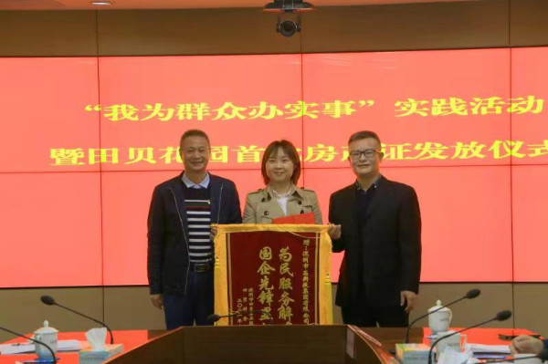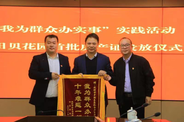 儀式當(dāng)天,5名村民代表從羅湖區(qū)領(lǐng)導(dǎo)的手中接過(guò)了房產(chǎn)證,田貝股份合作公司向有關(guān)單位贈(zèng)送錦旗表示感謝。