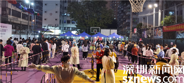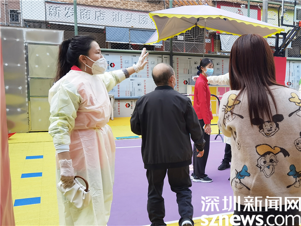 羅湖區(qū)審計局黨組書記黃吉南在新村社區(qū)防疫現(xiàn)場指導(dǎo)核酸檢測流程。