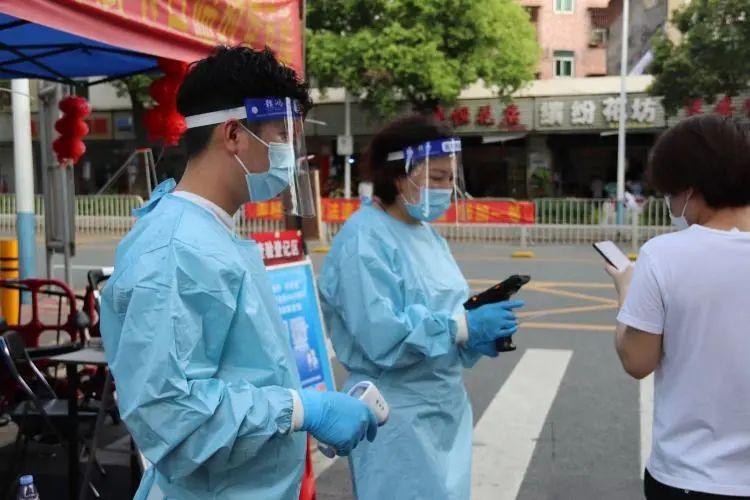 當(dāng)天下午,坪山區(qū)深港澳青年創(chuàng)新創(chuàng)業(yè)基地義工服務(wù)隊(duì)繼續(xù)來(lái)到秀新社區(qū)核酸檢測(cè)點(diǎn)參加志愿服務(wù)。隨著氣溫升溫,穿著防護(hù)服也越來(lái)越容易熱,面屏上都是水汽,但是大家依然堅(jiān)守在各自的崗位上。
