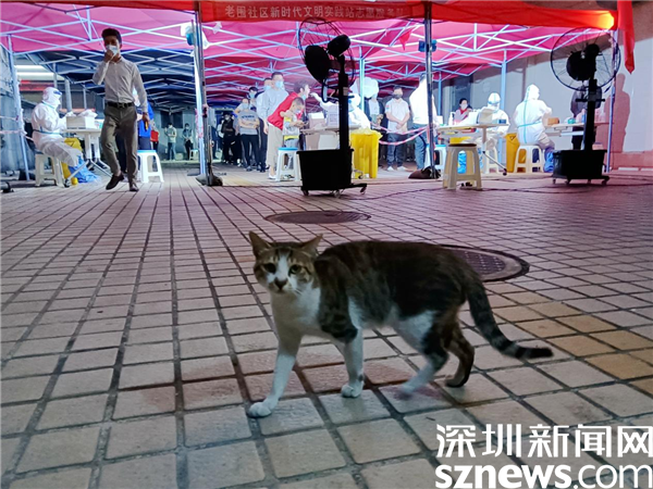 記者了解到,這四只流浪貓一直生活在羅湖區(qū)桂園街道老圍社區(qū)的禧程酒店核酸檢測(cè)點(diǎn),沒有檢測(cè)點(diǎn)之前,這里是停車場(chǎng),他們可以躲在車底,過著逍遙的日子。這里變成核酸檢測(cè)點(diǎn)后,車輛被移走,貓咪們一夜之間沒有了藏身之處,膽子小的貓不知躲在了何處,一只膽子大又親人的貓,每天在排隊(duì)等候檢測(cè)的人群中鉆來鉆去,有時(shí)就睡在采樣桌不遠(yuǎn)的地方。