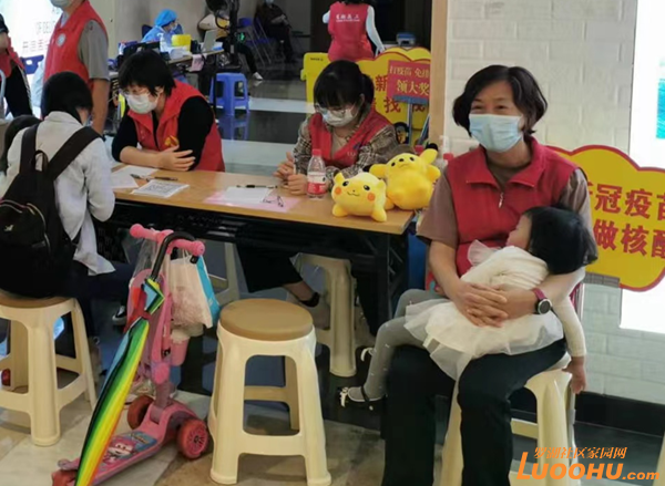 社工楊雨晨看到一個母親帶著剛滿3歲的大女孩來打第一針疫苗,懷里還抱著一個熟睡的孩子,填報信息時很不方便。楊雨晨連忙走過去,表示可以幫忙帶孩子,年輕的母親立刻把孩子交給了楊雨晨。楊雨晨接過孩子,感覺手中一沉,好重。已經(jīng)來來去去走動一天的楊雨晨,其實早就疲憊不堪,但看著孩子熟睡的小臉,看著那位母親邊填報信息,邊照看著大孩子,她也就不覺得累了。