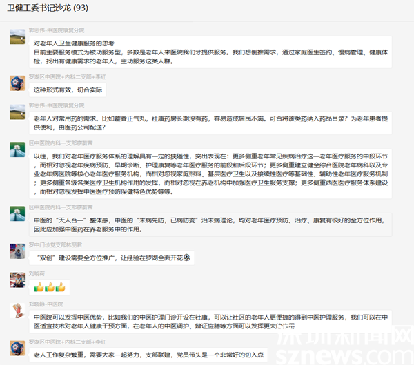 此次沙龍活動在一個小時內(nèi),收到各書記參與討論的信息超過200條,大家參與情緒熱烈。下一步,羅湖區(qū)委衛(wèi)生健康工委將把此次“書記沙龍”提出的好建議作為下一步老年健康服務(wù)工作的改進(jìn)方向,力促沙龍形成的經(jīng)驗(yàn)、思路切實(shí)轉(zhuǎn)化為實(shí)際舉措和工作亮點(diǎn),在黨建業(yè)務(wù)融合、健康共建共治、探索創(chuàng)新實(shí)踐上持續(xù)發(fā)力,不斷提升群眾的滿意度和獲得感,真正成為群眾的“暖心人”“貼心人”。