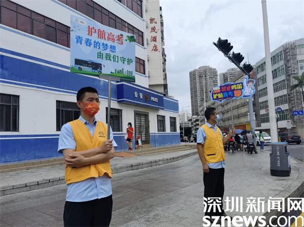 在各大考點(diǎn)門口,公安部門和交警大隊(duì)維護(hù)考點(diǎn)周邊道路交通秩序,在考場(chǎng)周邊設(shè)立交警護(hù)航服務(wù)點(diǎn),派駐專項(xiàng)“高考服務(wù)車”為考生及家長(zhǎng)服務(wù)。為做好高考期間道路交通安全保障服務(wù)和疫情防控工作,確保高考生平安順暢抵達(dá)考場(chǎng),羅湖交警大隊(duì)通過(guò)強(qiáng)化全警上路管控、調(diào)整考場(chǎng)交通信號(hào)配時(shí)、嚴(yán)查亂鳴喇叭等多項(xiàng)措施助力高考順利進(jìn)行。