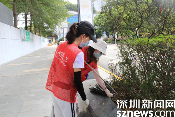 老圍社區(qū)蔡屋圍村民黃元娣和李梅英一組,她們平時(shí)是好姐妹,服務(wù)社區(qū)是好隊(duì)友。兩個(gè)人負(fù)責(zé)大劇院周圍的環(huán)境衛(wèi)生,毫不吝惜體力,花壇里的垃圾用垃圾夾不方便,就干脆用手抓。