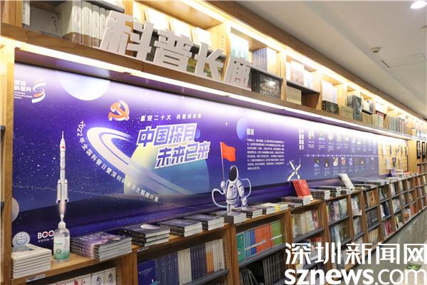 在科普月期間,羅湖書城在一樓“長盒子”空間,特別打造了“科創(chuàng)科普 兩翼齊飛”主題教育展。展覽圍繞“中國這十年科技創(chuàng)新交出亮眼成績單”“紀(jì)念科普法頒布20周年”兩大重要節(jié)點(diǎn),策劃了“科技創(chuàng)新”“科普法治”“互動學(xué)習(xí)”三大內(nèi)容板塊,集中展示中國科技發(fā)展報告、《中華人民共和國科學(xué)技術(shù)普及法》《深圳經(jīng)濟(jì)特區(qū)科學(xué)技術(shù)普及條例》等內(nèi)容,圖文并茂地講述了中國科技發(fā)展成果和中國科普工作成果。