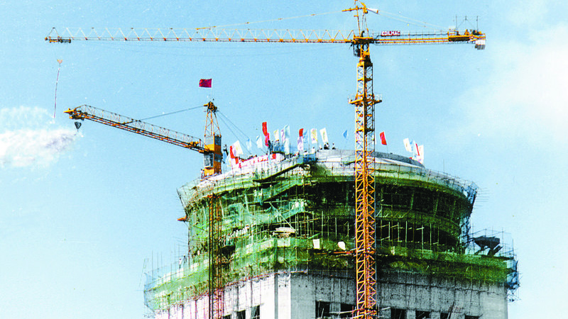 1984年2月,興建中的國(guó)貿(mào)大廈