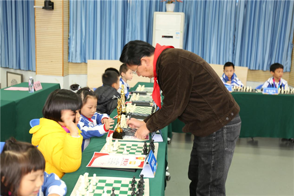 12月27日下午,2021年國際象棋特級大師葉江川走進深圳小學(xué),與16名小棋手進行了一場別開生面的車輪戰(zhàn)。