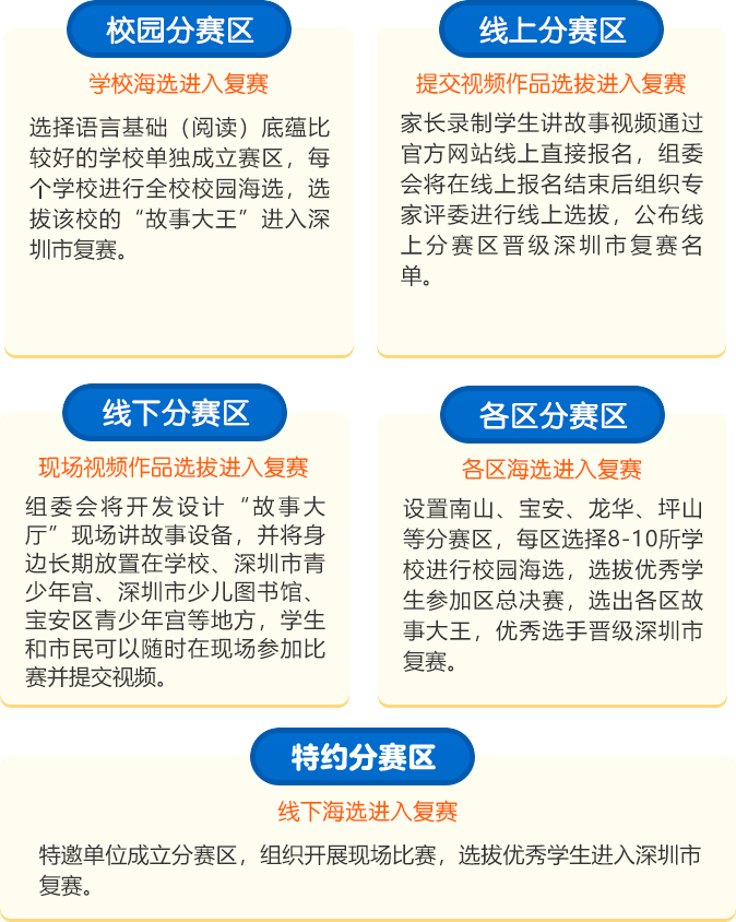讓閱讀成為動人的風(fēng)景,讓故事的魅力感動深圳。為助力建設(shè)良好的青少年閱讀環(huán)境,激發(fā)學(xué)生閱讀興趣,倡導(dǎo)親子閱讀,共建和諧家庭關(guān)系。2020年,第二十一屆深圳讀書月主題活動“誰是故事大王·第四季”在共青團(tuán)深圳市委員會、深圳市關(guān)愛行動組委會辦公室的指導(dǎo)下再出發(fā)。更長的活動周期,更豐富的參與形式,更專業(yè)的賽制,“誰是故事大王·第四季”等你來解鎖與挑戰(zhàn)!