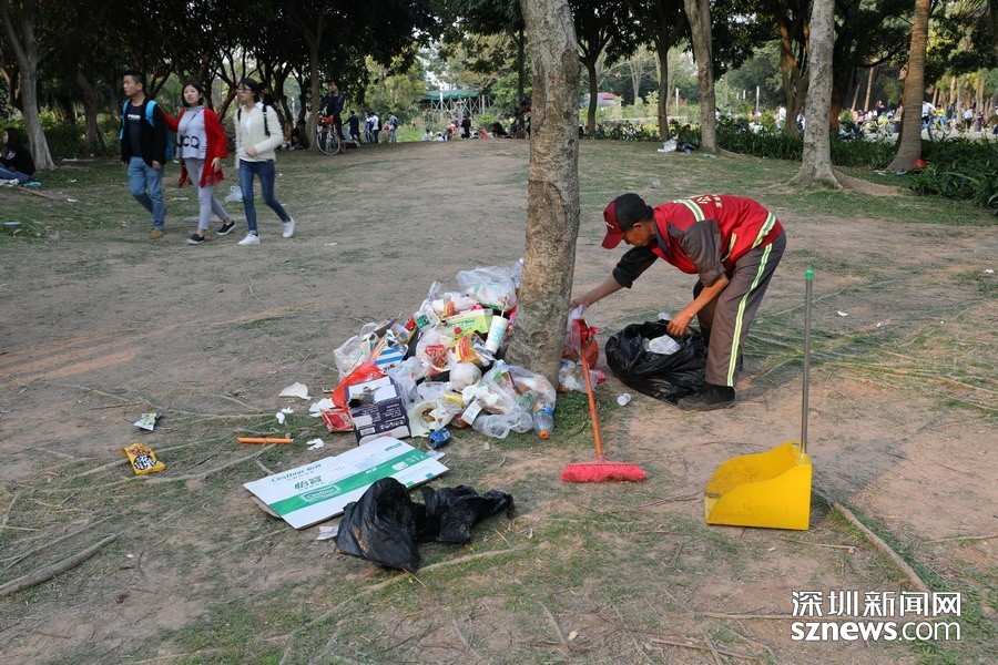 節(jié)假日人流量和車流量的加大,也給深圳灣公園內(nèi)的生態(tài)環(huán)境帶來了壓力,人流密集的地方,垃圾的產(chǎn)生也相對較多,在深圳灣公園的草坪上,許多游客遺留的垃圾, 給環(huán)衛(wèi)工人增加了工作量。
