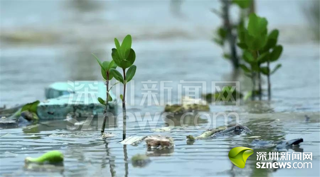 成長(zhǎng)中的紅樹苗受海洋垃圾覆蓋,成活困難