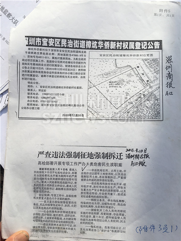 2010年深圳商報刊登的民治街道樟坑華僑新村權屬登記公告