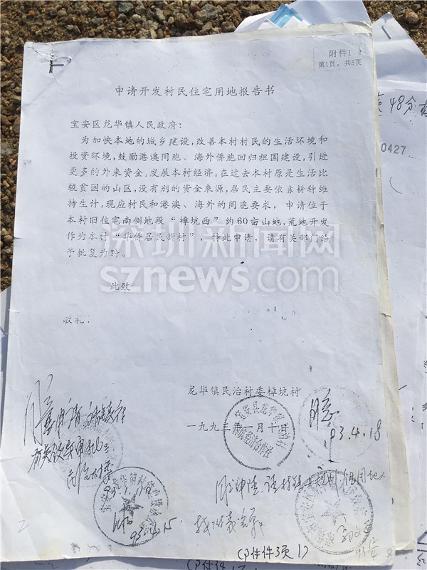 1993年龍華民治村委樟坑村申請開發(fā)村民住宅用地的報告書