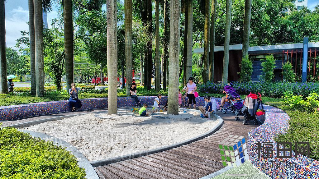?香蜜公園內許多家長帶著孩子玩耍。