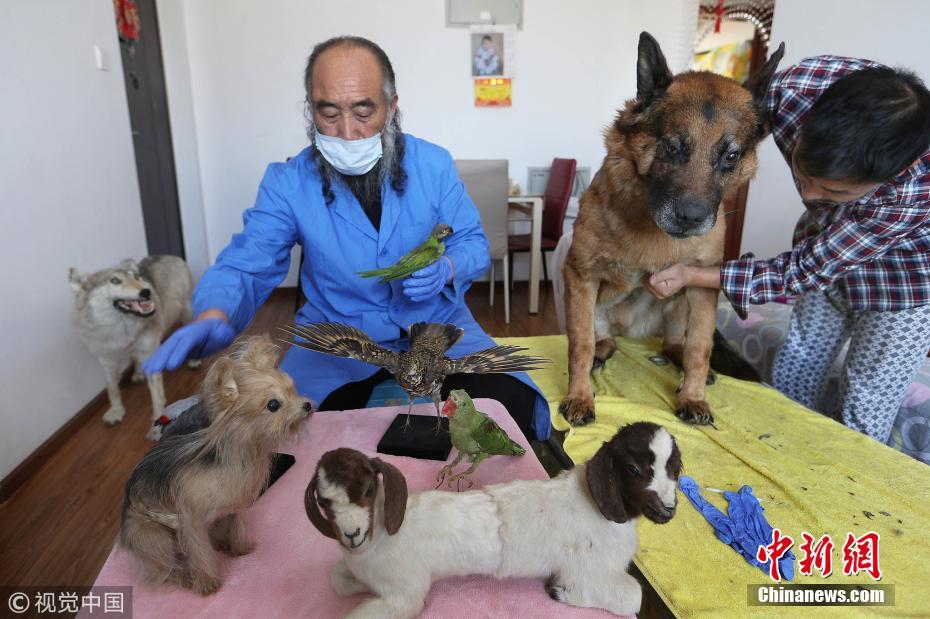 狗年到來,來找他將離世的愛犬和其他寵物做成標(biāo)本的人絡(luò)繹不絕,動(dòng)物們就這樣老郭手中復(fù)生。據(jù)老郭介紹,進(jìn)入狗年,他接到了幾位主人送來的三只過世狗狗來做標(biāo)本。從20歲出頭開始制作第一只貓頭鷹標(biāo)本以來,在老郭手下復(fù)生的動(dòng)物大到汗血賽馬、獅子、野豬,小到蜂鳥,近些年僅制作賽馬標(biāo)本就有50匹,其它的寵物標(biāo)本有數(shù)千余件。文字來源:法制晚報(bào) 圖片來源:視覺中國