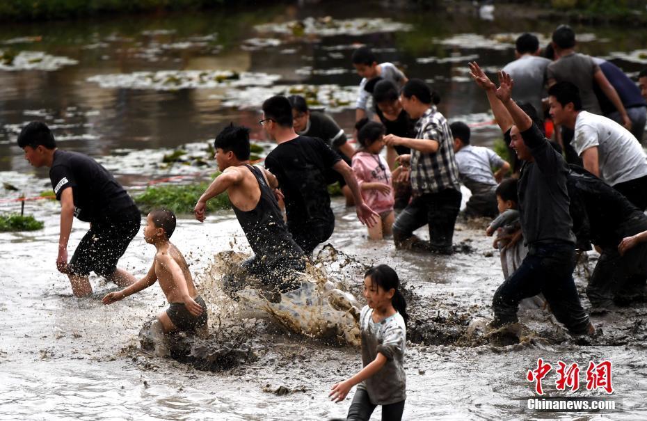 3月17日,福建省龍巖市連城縣莒溪鎮(zhèn)璧洲古村落內(nèi),一場(chǎng)“抓魚(yú)鬧春田”的活動(dòng)吸引了許多市民前來(lái)參與。圖為民眾在泥塘的渾水中抓魚(yú)。中新社記者 張斌 攝