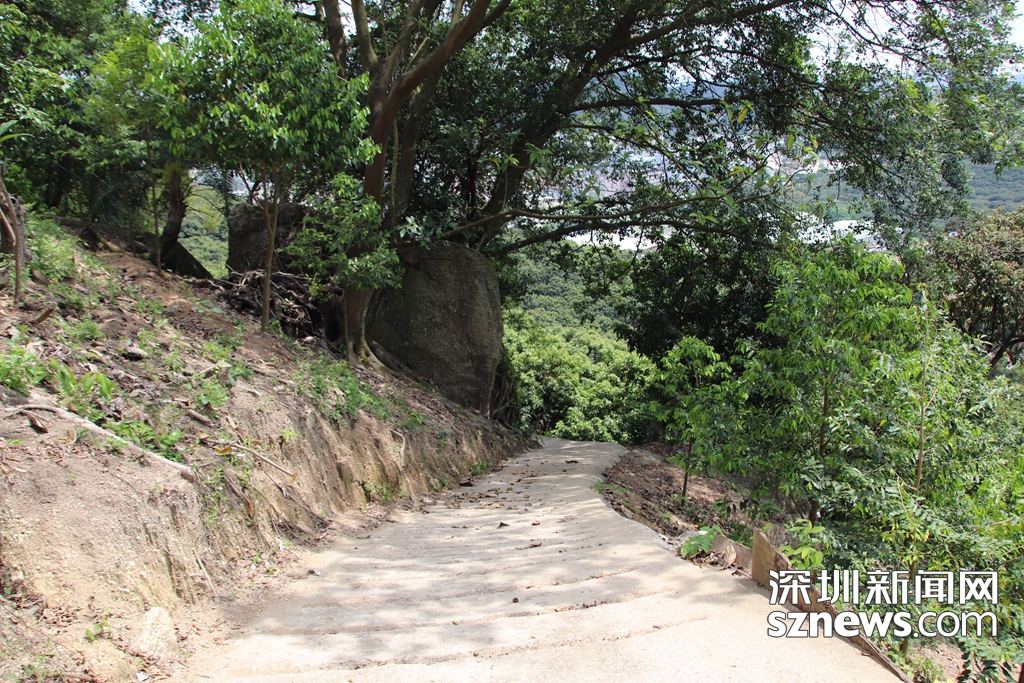 5月16日,深圳新聞網(wǎng)記者爬上羊臺(tái)山,用無(wú)人機(jī)和相機(jī)拍下羊臺(tái)山毀林案件涉案的兩棟違法建筑拆除后的情景。記者從羊臺(tái)山隱蔽的一處登山,山路崎嶇且陡峭,沿路都是荔枝林,多頭大型犬見到陌生人狂吠不已。耗時(shí)三四十分鐘登臨山腰,可俯瞰西麗水庫(kù),視野極佳。
