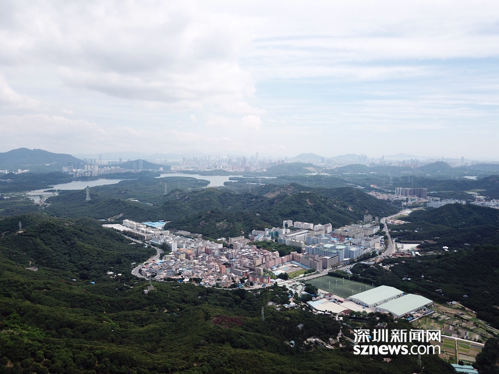 從羊臺(tái)山風(fēng)門凹山腰看西麗水庫(kù)及山腳下麻磡村