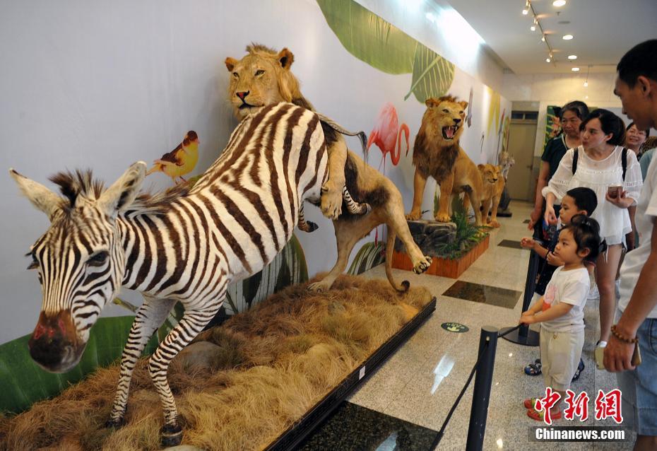 5月27日,各類飛禽走獸活靈活現(xiàn)地出現(xiàn)在民眾的眼前。正在福建博物院展出的第四屆中國動物標(biāo)本大賽的257件惟妙惟肖的標(biāo)本作品集中對外開放,讓民眾如進(jìn)入“動物世界”。本次大賽匯集了全國標(biāo)本制作企業(yè)、博物館、大專院校、研究所等60多家單位參加,標(biāo)本涵蓋哺乳類、鳥類、爬行類、兩棲類、魚類等動物類群的皮張和骨骼標(biāo)本。主辦方希望通過標(biāo)本大賽,向公眾展現(xiàn)動物世界的美麗,宣傳生物多樣性和生態(tài)文明,借鑒吸收國際標(biāo)本制作先進(jìn)經(jīng)驗,提高中國野生動植物標(biāo)本制作的整體水平。圖為大賽參賽作品展吸引了許多民眾前來觀賞。中新社記者 張斌 攝