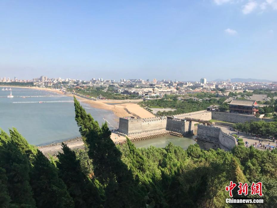 7月16日,記者探訪了山東省蓬萊市蓬萊閣。蓬萊閣是中國古代四大名樓之一,素有“人間仙境”之美譽。傳說曾有神仙出沒于此,秦始皇曾命人在此尋求“長生不老”之藥。蓬萊閣建于丹崖極頂,建筑凌空,海霧氤氳,居身其中,恍如身處仙境?!鞍讼蛇^?!钡膫髡f亦源于此地。在蓬萊閣主閣二層,登臨遠眺,蓬萊盡收眼底。中新網記者梁美辰 攝