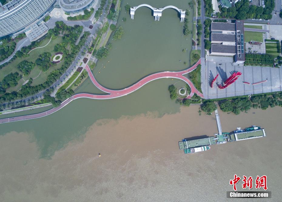 7月10日,航拍長(zhǎng)江與南京秦淮河交匯處,江水與河水“涇渭分明”。當(dāng)日,江蘇水利廳發(fā)布的水情信息顯示,長(zhǎng)江南京段水位已降至警戒線以下。中新社記者泱波 攝
