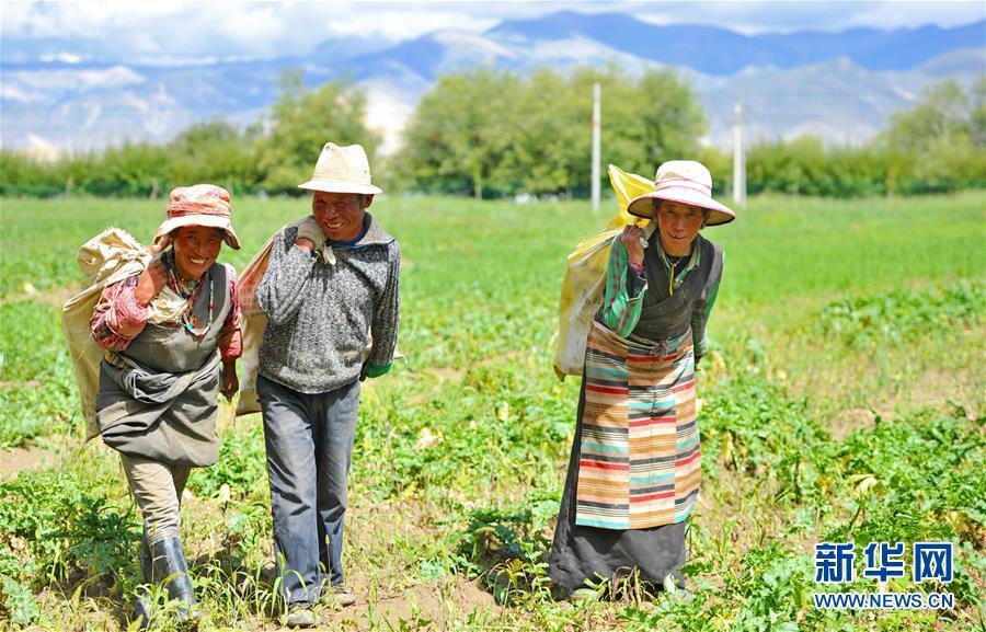 8月8日,在邊雄鄉(xiāng)普夏村蘿卜種植基地,村民將收獲的蘿卜運向地頭。 新華社發(fā)(趙宏 攝)