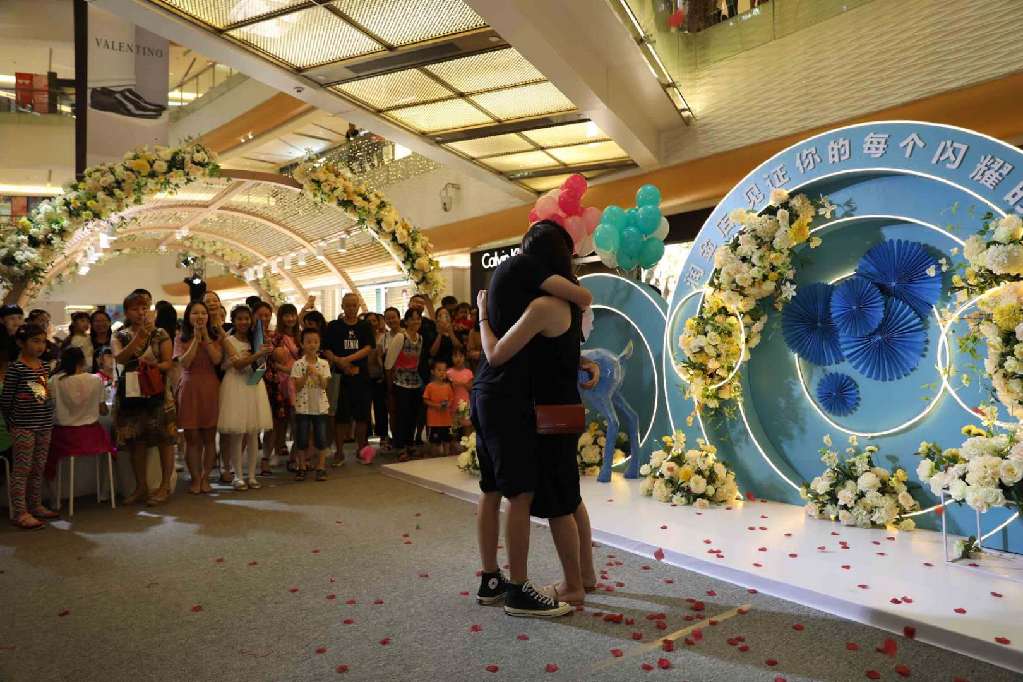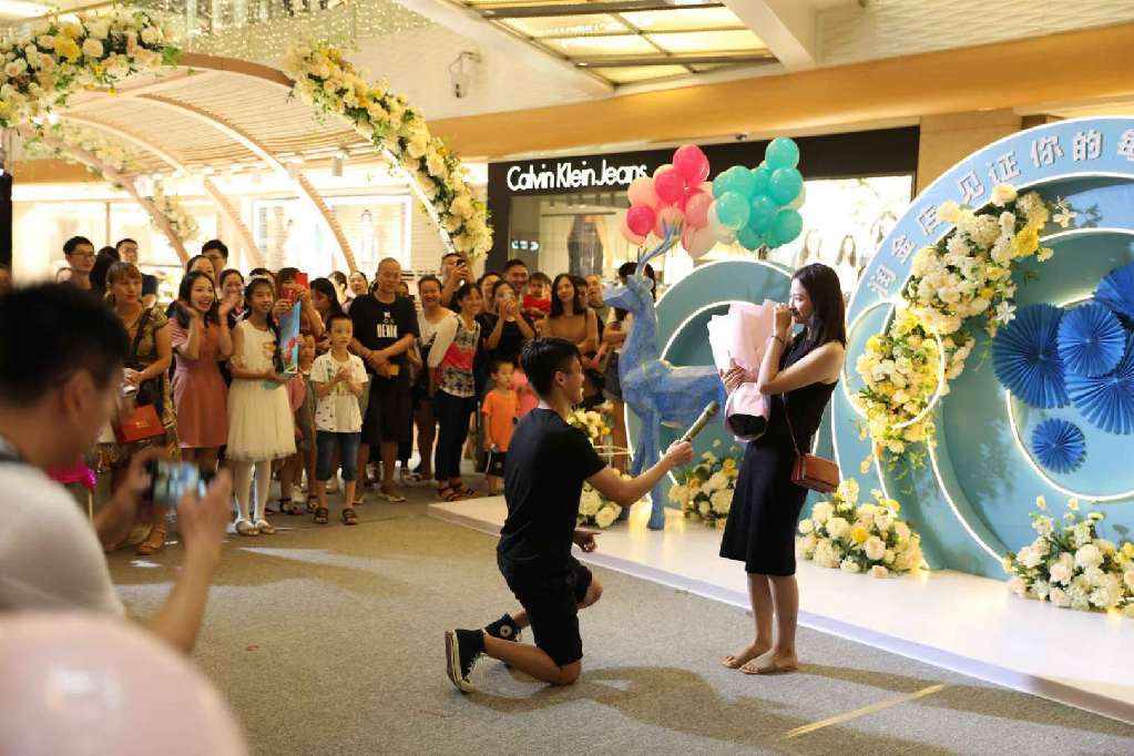 開幕式當天,潤金店工作人員還配合市民楊先生上演了一場浪漫的“求婚大作戰(zhàn)”。原來,數(shù)日前,楊先生到潤金店表示要買一枚與眾不同的戒指向女友求婚。在銷售顧問的建議下,楊先生選購了一枚藍寶石戒指作為求婚信物。得知楊先生的心意后,潤金店品牌策劃部決定與楊先一起在七夕當天完成這場浪漫的“求婚大作戰(zhàn)”。當天,楊先生帶著毫不知情的女友來到潤金店“炫出色彩 耀你不凡”VIP品鑒會現(xiàn)場。正當女友全神貫注欣賞小提琴、拉丁舞等開幕式表演節(jié)目時,楊先生從兜里掏出事先準備好的藍寶石戒指,單膝跪地向一臉茫然的女友喊:“嫁給我吧?!贝藭r,開幕式現(xiàn)場背景音樂“配合”地換成了甜蜜的《今天你要嫁給我》。感動得熱淚盈眶的女友在圍觀市民的歡呼中,拉起了楊先生,并答應了他的求婚。圍觀市民表示“七夕不過是路過,卻不料狠狠地吃了一把狗糧?!?/p>