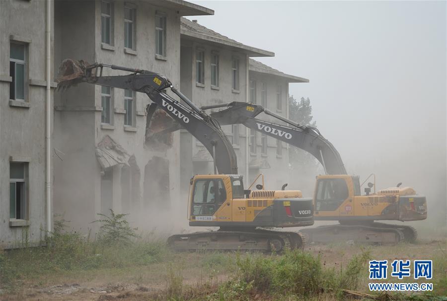 8月14日,大型機械對西安市鄠邑區(qū)蔣村鎮(zhèn)的違建別墅進行拆除。新華社記者 邵瑞 攝